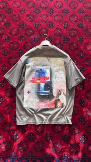 -تيشيرت باللون الرصاص ي -طباعة من الخلف -الطباعة الامامية اختيارية “يرجى التواصل عبر الواتساب للاختيار” – يرجى غسيله يدوياً وكيّه
