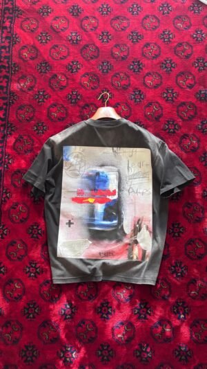 -تيشيرت باللون الاسود الباهت -طباعة من الخلف -الطباعة الامامية اختيارية “يرجى التواصل عبر الواتساب للاختيار” – يرجى غسيله يدوياً وكيّه