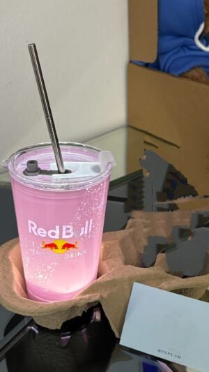 كوب ريد بُل المضيء باللون الازرق بتصميم عصري ومميز، يأتي مزوّدًا بغطاء وسترو، ويعمل بالبطارية لإضاءة جذابة عند الاستخدام