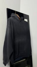 • اللون والملمس: أسود فحمي مغسول (Faded/Washed Black)، مما يمنحه مظهرًا عتيقًا (Vintage) وملمسًا ناعمًا ومريحًا.